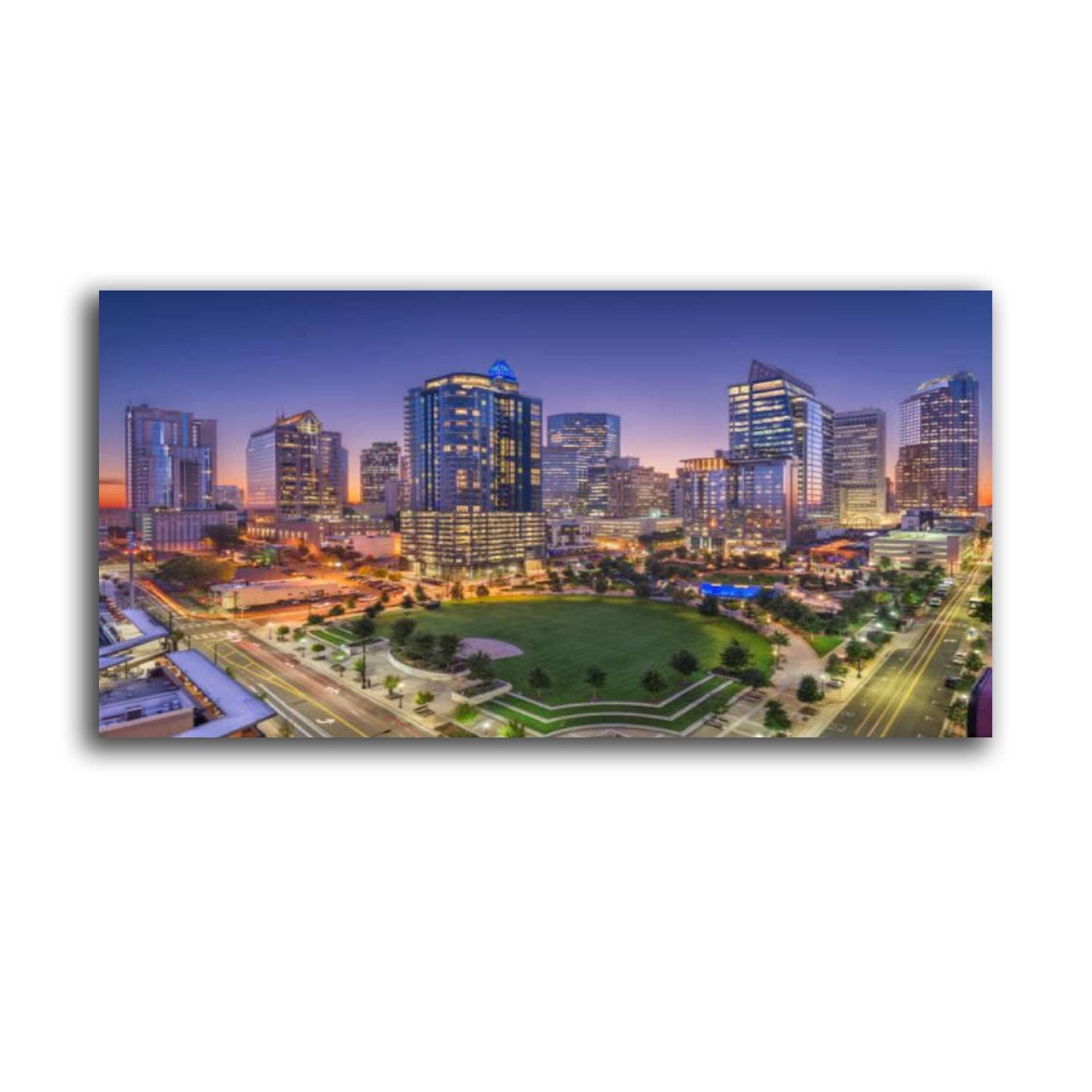 Amazon Com Large Wall Art Charlotte North Carolina Uptown Painting Poster Print On Canvas Artwork For Living Room Bedroom Stretched And Framed Ready To Hang 20 X40 Everything Else